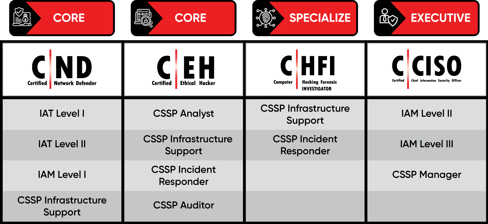 EC-Council certifications are endorsed by the US Department of Defense (DoD) 8140 directive. For more information, please click here.